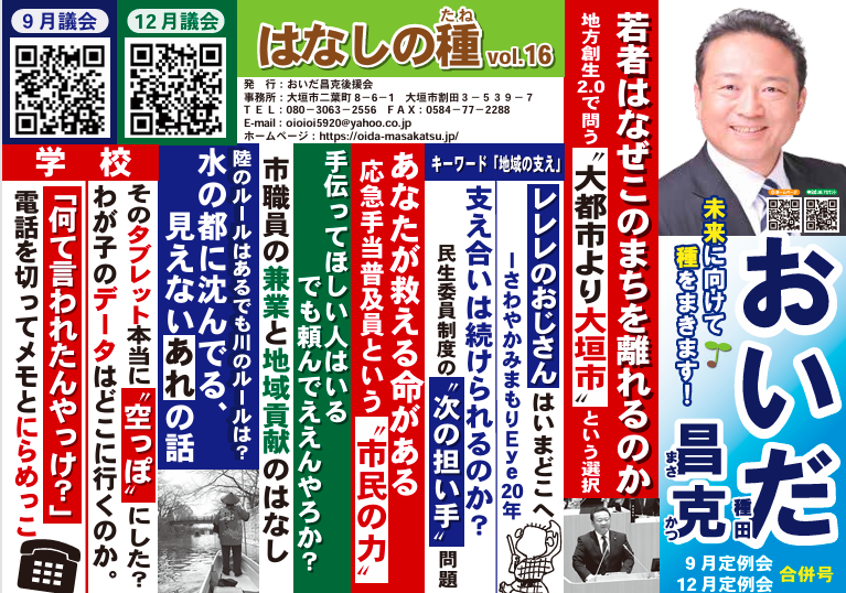 活動報告書『はなしの種(vol.16)』 2026年1月29日木曜日活動記録 活動報告書『はなしの種(vol.16)』 コチラから↓ https://oida-masakatsu.jp/activity/file/20260129102621.pdf ▼地域のみなさまに、衆議院総選挙終了後(2月中旬)から少しづつポスティングさせていただきますのでよろしくお願いいたします!